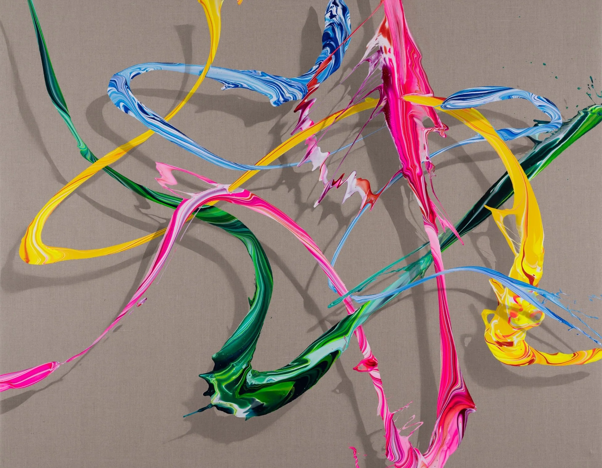 Initially inspired by experiments with liquid paint on vibrating surfaces, Voinea’s intention throughout his various recent series of abstract works has remained the same, to capture and freeze a vibrant and colorful moment in time and space.